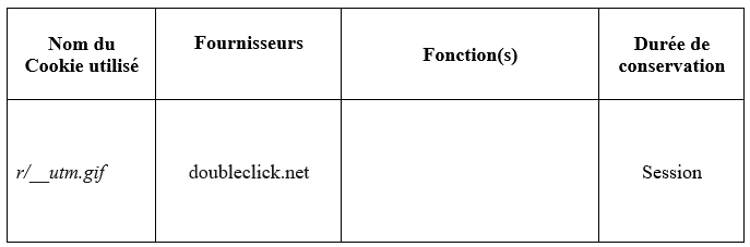 MARKETING COOKIES ARE INTENDED TO BE STORED ON THE INTERNET USER'S BROWSER FOR A VARIABLE PERIOD OF TIME. THIS DURATION WILL DEPEND ON EACH COOKIE AND IS DETAILED IN THE TABLE BELOW: